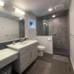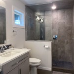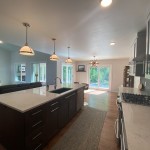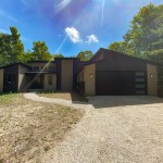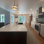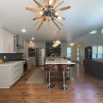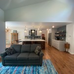 Countrywide Construction and Design is pleased to share with you a custom designed and built contemporary home. Both modern and welcoming, this 3-bedroom, 2-bath home has almost 2,000 square feet of living space on one accessible floor. The sleek roof, black clad windows, and combination of vertical and horizontal siding create a striking appearance on the exterior. Once inside, the warm hardwood floors and panoramic view of the outdoors invite you to unwind and relax. The main living areas are open, but with varied ceilings and glass partitions to create separation between the spaces.